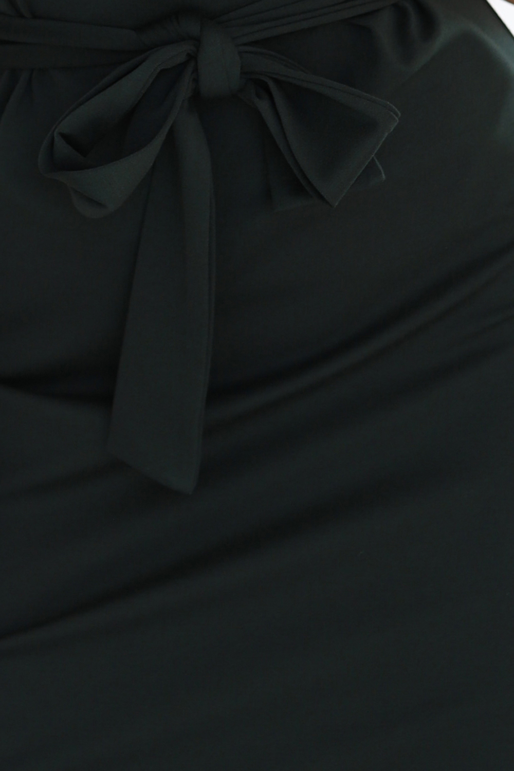 Elegant dress with waist tie – dark khaki | Numoco
