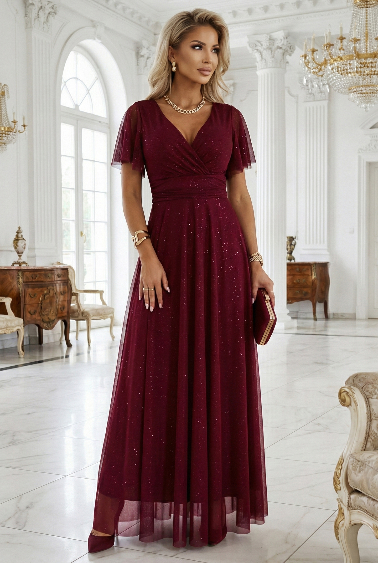 Imagine the moment when you enter the room and lights gently dance on your silhouette. This burgundy maxi dress is more than a creation - it's a promise of an unforgettable evening. Created for a woman who wants to combine classic elegance with a touch of stardust. The deep, wine shade of burgundy combined with thousands of tiny glitter particles makes every moment in this dress take on a cinematic character.